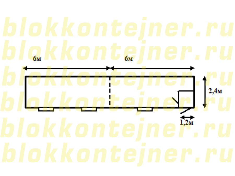 Модульное здание 12,0*2,4*2,5 м.-1шт,  состоит из 2-х  БК  6,0*2,4*2,5 м.